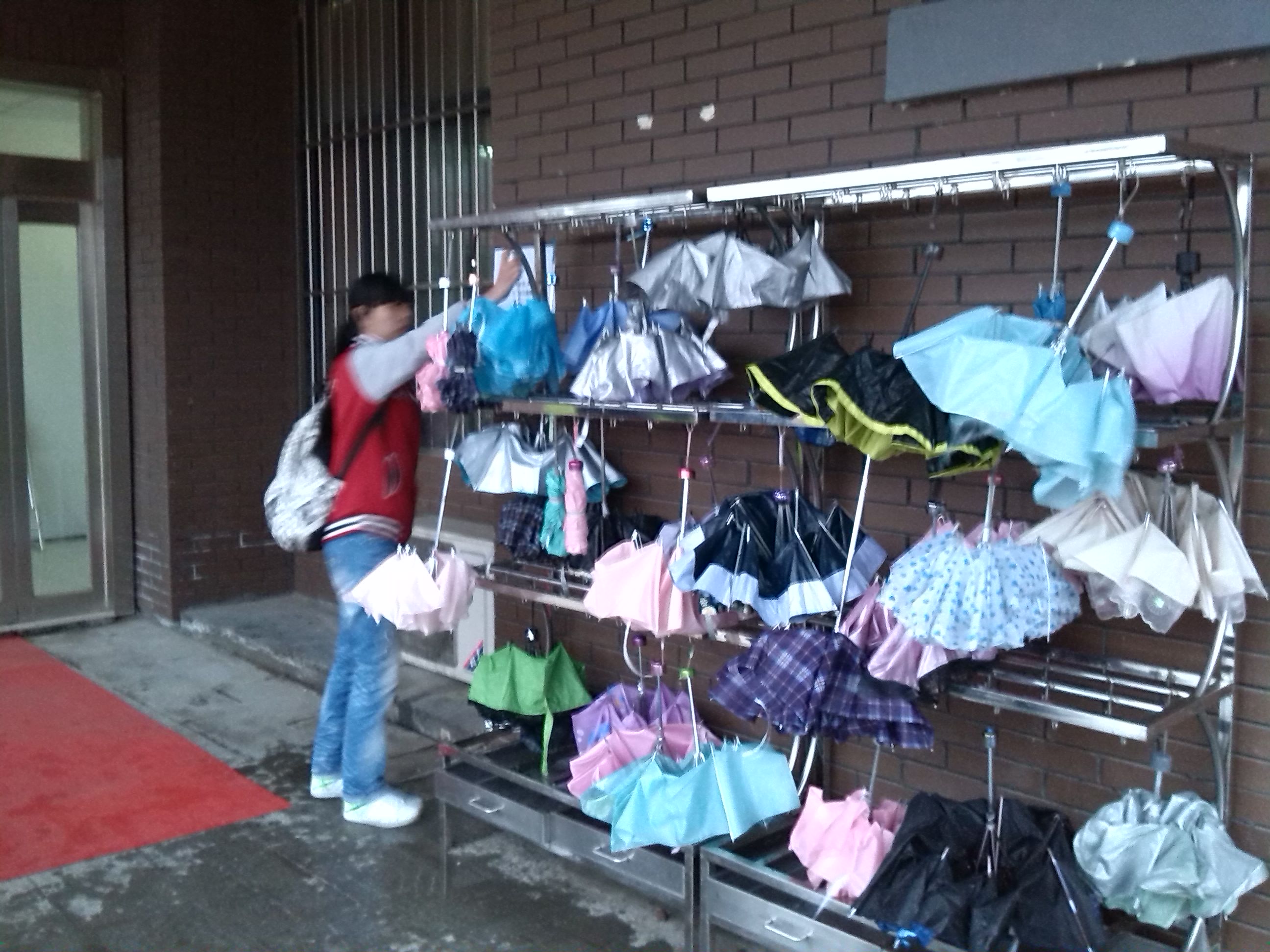 为缓解此状况,图书馆特为新乡校区和平原校区图书馆设计定制了雨伞挂架。雨伞挂架到货的第二天适逢下雨,即发挥了良好的作用。雨伞挂架的使用不仅方便了来馆读者在雨天放置雨伞,也使原先雨伞随意乱放的问题得到了很好的解决。