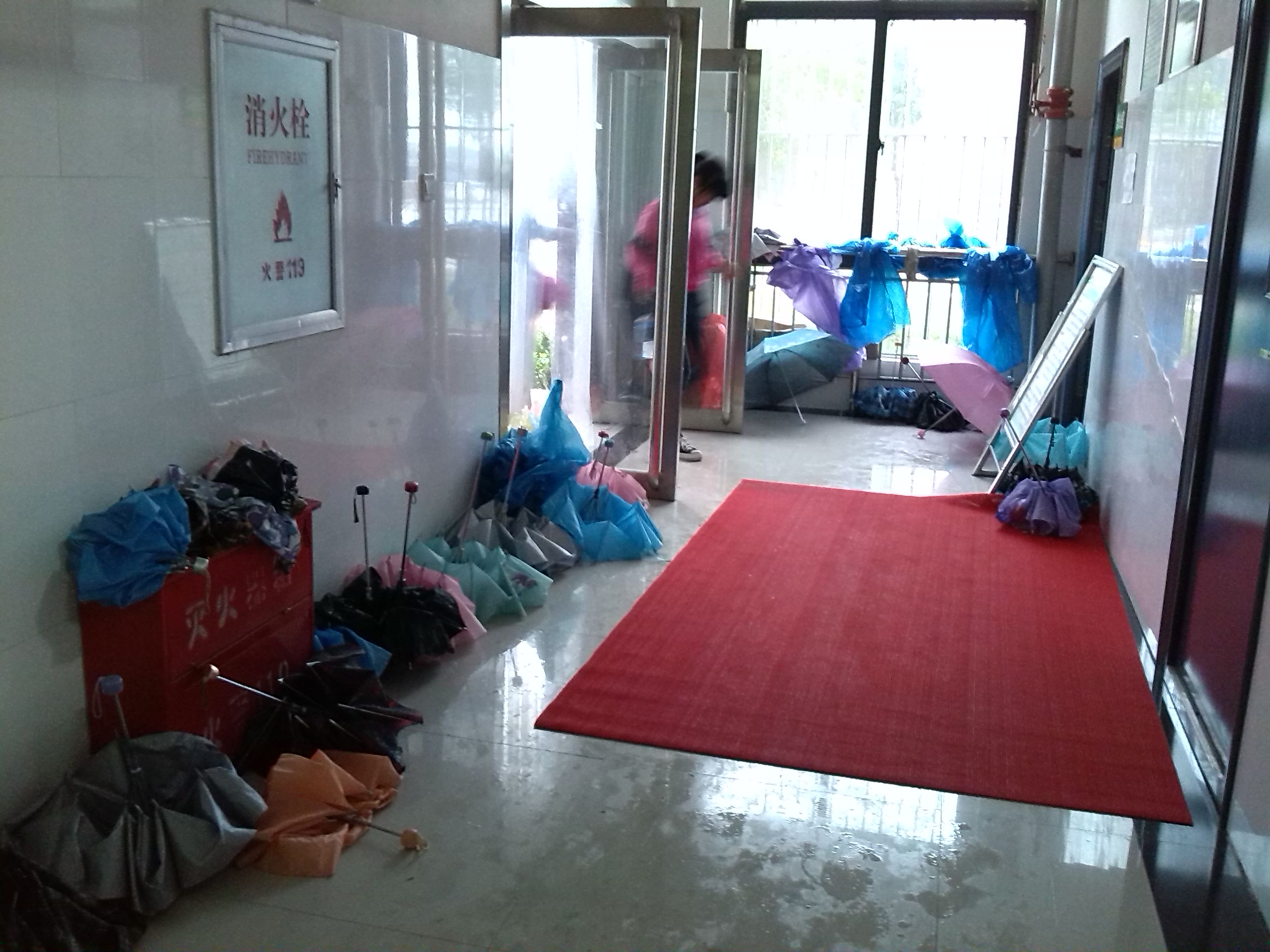 因我院新乡校区和平原校区图书馆均为临时场地,大门口无门厅等回旋空间,遇雨天,读者来馆人数较多,雨伞不能带进阅览室,读者只得把雨伞随意放在门口过道或走廊,占据了门口过道、走廊大量空间,既不安全又不美观。