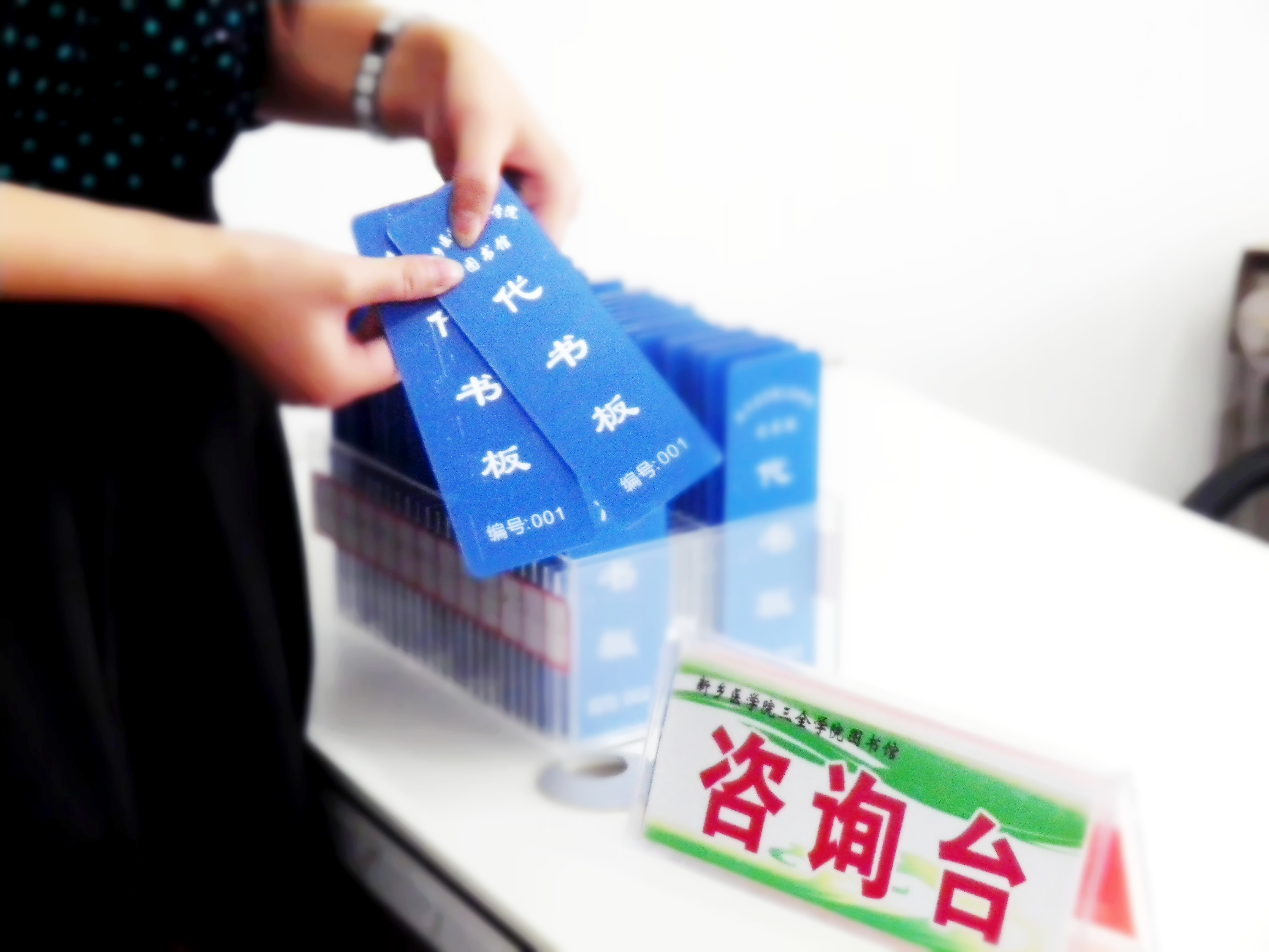 图书馆拟定于自2015年6月23日开始试行“代书板”取阅方法。代书板是用于读者取阅书刊时代替书在书架上位置的“标识工 具”,以保证图书准确归位,排架顺序不乱。 图书馆实行书、刊开架借阅,如同超市实行自由购物一样,读者可直接进入书库选取自己中意的书刊。但是,有些读者经常将书有意、无意地放错位置,这就是所说的“乱架现象”。“乱架”会给读者找书和图书管理带来不便。图书馆书库书刊是按一定的规则有序排列的,每一本书都有其特定的位置,这个位置是由这本书的“索书号”确定的,一旦这本书脱离了它确定的位置,工作人员和读者都难以在“书海”里找到这本书,不仅给读者找书带来了许多不便,同时也给图书馆工作人员整理书刊带来不便,严重影响图书资源的正常使用。 为了减少书刊乱架现象,保持便利快捷的图书阅览环境,图书馆自2015年6月23日开始试行“代书板”取阅方法,希望广大师生予以理解支持。 图书馆 2015.6.19 图1 进书库浏览借阅图书时,可先在咨询台领用代书板(两个相同编号的代书板)