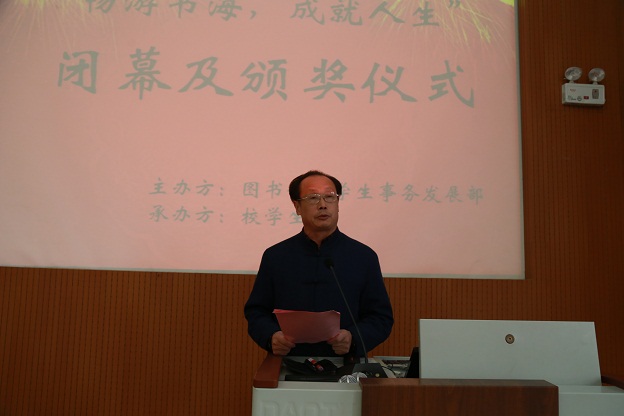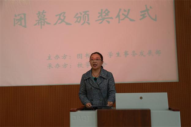 接着,新乡医学院三全学院副院长沈雁霞为第四届读书月闭幕式致辞。她提出:“畅游书海,成就人生”不仅是我们读书月的主题,更是我们读书的目标和方向。一生读书,一生聪明;一生读书,一生光明。读书丰富和快乐了我们的人生,我们要坚持读书,终身读书,让好书飘溢我们的校园,让好书陪伴我们的人生。