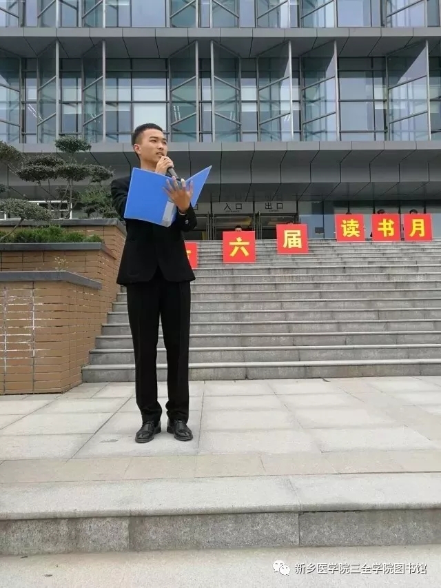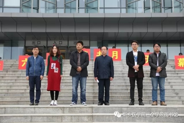 新馆盛装迎学子,万卷藏书育英才。2017年10月25号上午十点半,新乡医学院三全学院第六届读书月开幕式在图书馆前隆重举行。图书馆馆长华玉民、副馆长张帆及各书院院务主任出席了本次活动。
