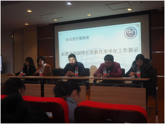 为了让新成员了解图管会,老师和成员之间相互认识交流,并加强图管会凝聚力与影响力,新乡医学院三全学院图书馆学生管理委员会于11月21日在图书馆五楼学术报告厅举办图书馆干事见面会。出席本次会议的领导老师有新乡医学院三全学院图书馆副馆长张帆、图书馆学生管理委员会指导老师吴姣老师、图书馆办公室信息技术部郭云鹏老师、图书馆读者服务部王玉芬老师、图书馆文献资源建设部常亚辉老师,以及图管会全体成员参与了本次会议。 会议伊始,全体人员起立唱国歌行注目礼,主席团主任李明蔧代表主席团发表讲话。她向全体干事提出三点建议:一、端正自身工作态度;二、增强团队意识;三、保证开展活动的质量。希望大家力争在服务中显示实力,在工作中形成动力,在交往中凝聚合力,以共同目标团结他人,以自身行动带动他人,以有效的管理激励他人,为图书馆的建设与发展竭尽全力。 而吴姣老师则针对图管会的构成向全体成员阐述,图管会的主力军为学生,要不断吸收和组织热爱图书馆工作并且极负责任感的学生,为图管会注入新鲜血液。另外要引导读者了解和利用图书馆丰富的馆藏资源,促进图书馆资源更加高效的利用。以此来增进图书馆和读者之间的沟通与交流,真正的起到桥梁纽带作用,提高图书馆服务质量和管理水平。 在图书馆副馆长张帆发言中,指出图管会在全校学生组织中的重要性。同时他为全体人员提出读书的重要性并建议干事们要有时间管理的观念。张馆长对主席团和各部长的工作能力表示肯定,还表扬了新干事的动力为图书馆增添了活力。他特别强调了干事要有礼貌,懂事理,以礼待人,传承中华民族优良传统。最后张馆长以一句话勉励全体成员——敢做惊天动地事,甘做默默无为人。最后由各部门部长介绍各部门职能并介绍本部门干事作为总结,让新成员对图书馆学生管理委员会的内部有了更深的了解。 通过此次见面会,干事与老师之间有了简单的了解,干事们之间则更加团结,而图管会全体成员更是团结一心,群策群力,力求将第一届图书馆学生管理委员会建设成学习型、思考型、实干型的团队。