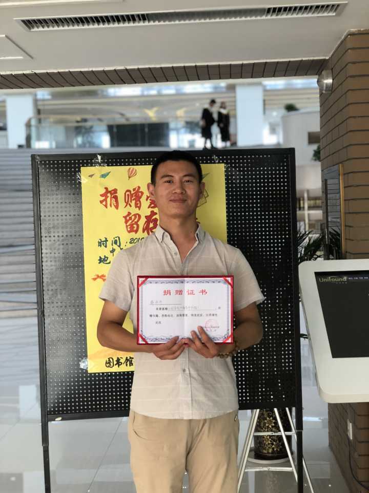 第五站:捐书献爱心。最后一站了,临别之际,将那些曾经给自己带来知识、带来慰籍、带来梦想的书籍捐献出来,既丰富了图书馆藏书,也为学弟学妹们提供更丰富的精神食粮,激励后来者更加努力学习。一张证书,不仅是捐赠的书香,更是对母校的深情。