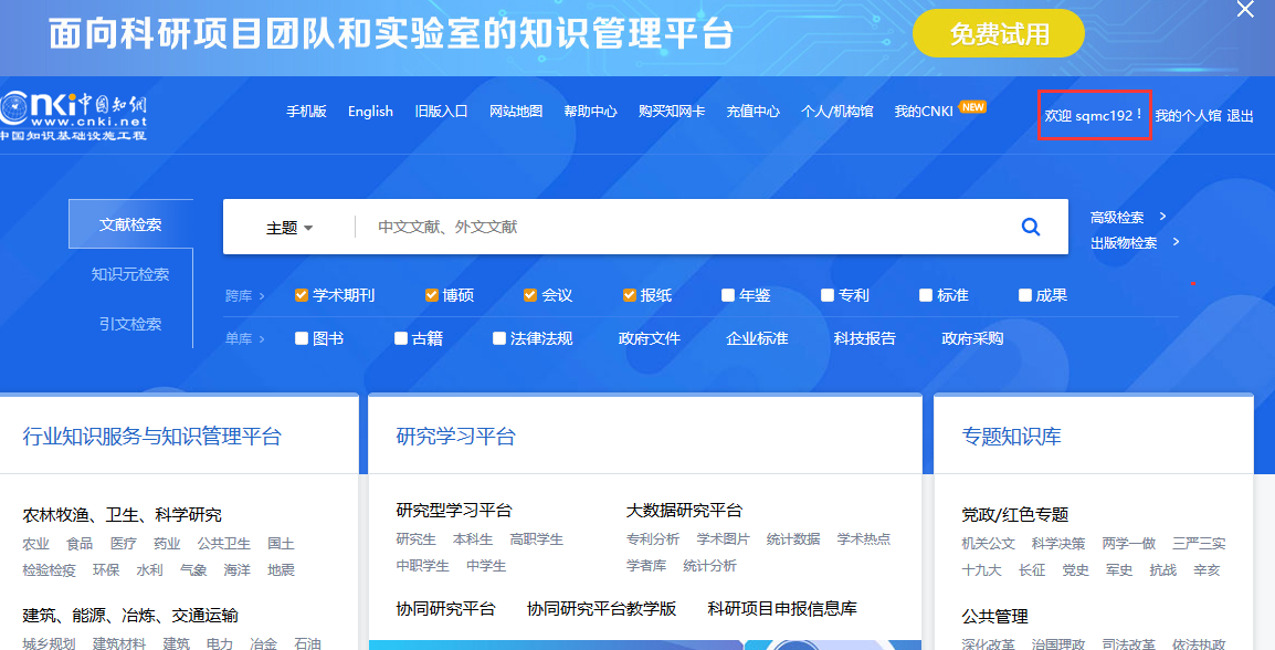 (3)页面自动跳转到登录后的首页界面,即可检索下载使用,如系统提示当前并发已满,这是由于此账号有其他人在使用,可换其他漫游账号或过一段时间使用。如下图: