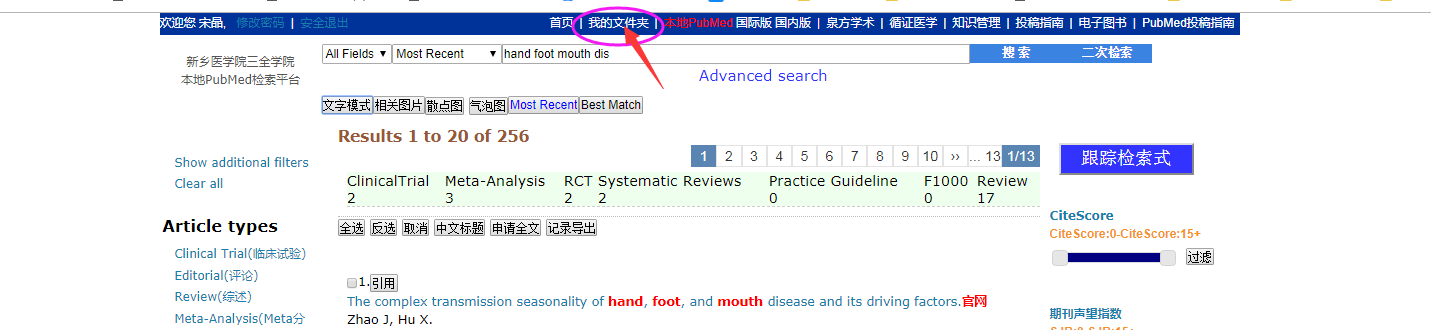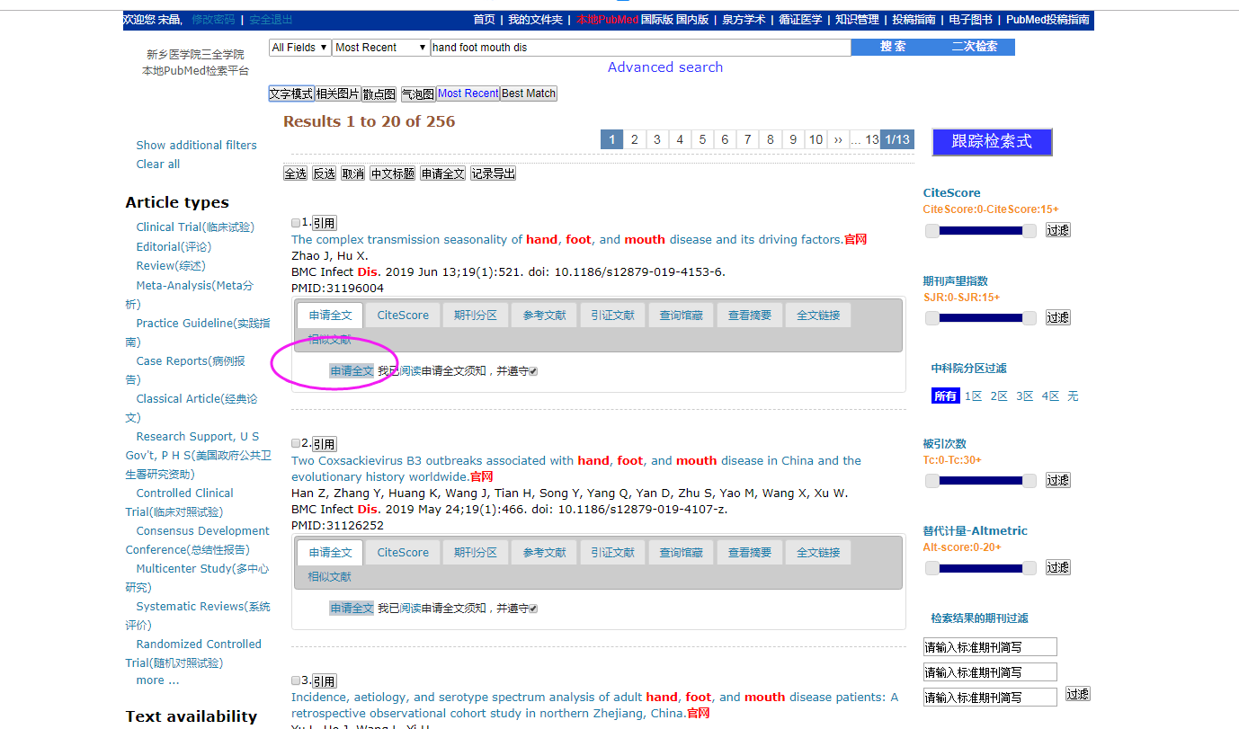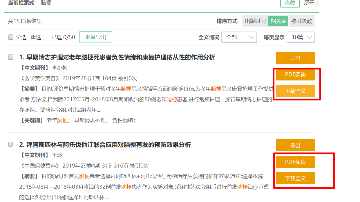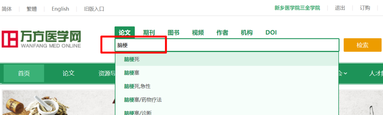 (图3) 3.检索关键词(如图4),找到需要的文章,根据自身需求进行响应的操作—线阅读或下载全文(如图5):