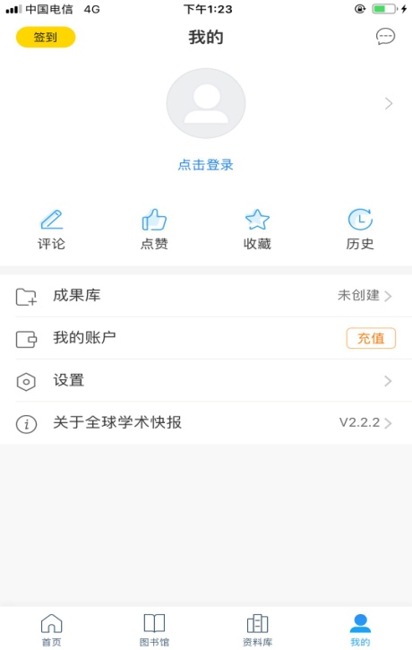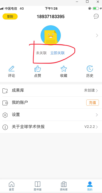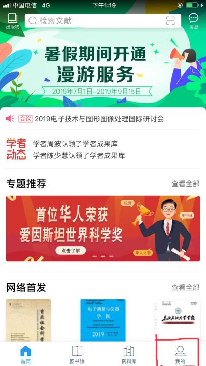 安装完打开移动图书馆客户端,点击登录(用借阅证账号密码登录,遗忘可以咨询图书馆),然后点击“学术资源”模块即可使用读秀数据库手机端模块。