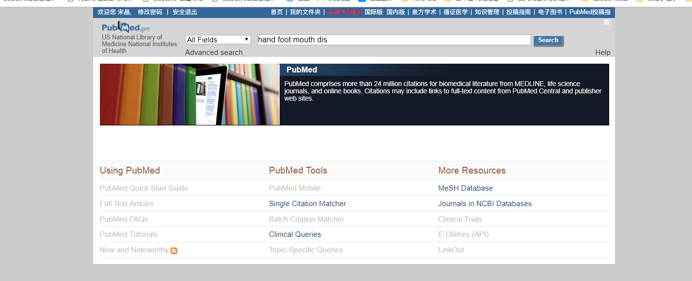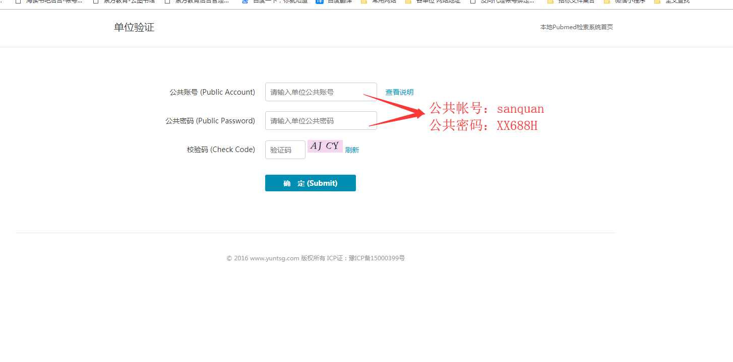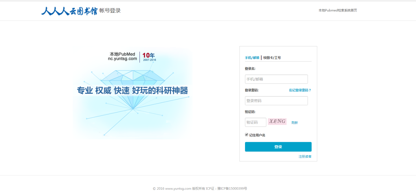 五、本地PubMed检索平台 1、电脑端互联网访问 (1)任一可访问互联网的电脑浏览器打开本地PubMed检索平台网站,网址为http://nc.yuntsg.com如下图: