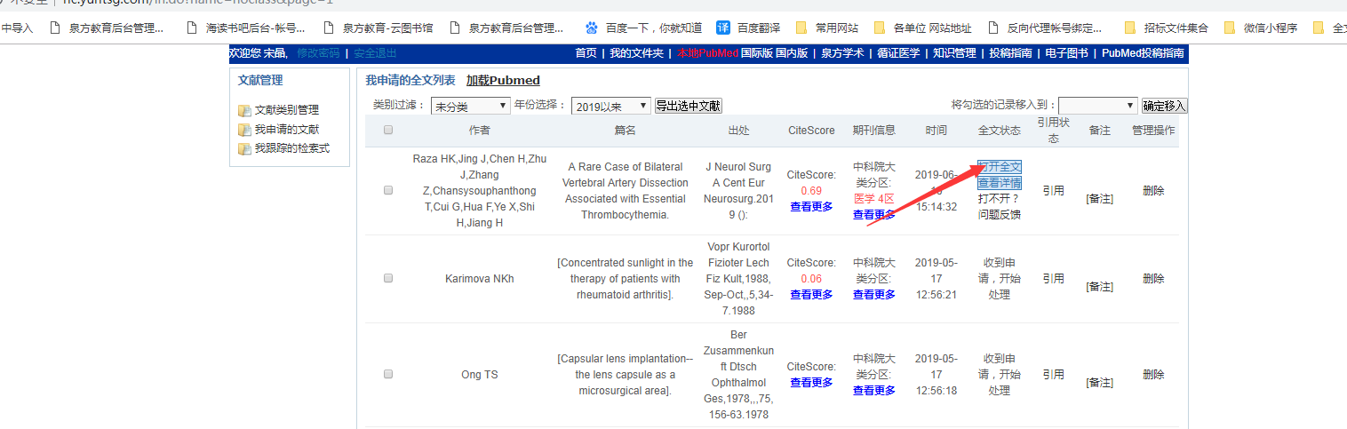 想要查看的文章可以点击申请全文,在我的文件夹中打开查看全文传递过来后,全文状态为 打开全文,您就可以点击在线查看或选择另存为