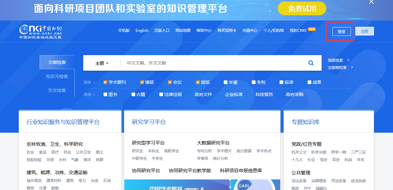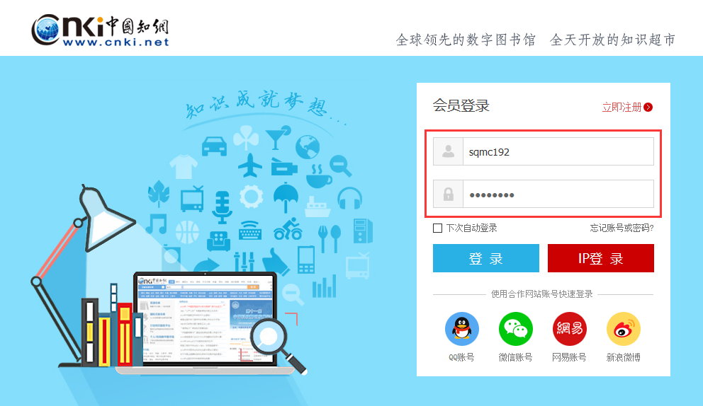(4)如果有中国知网的个人账号,可直接登录,如果没有注册过个人账号,可点击登录后注册账号,或qq、微信、微博登录,如下图: