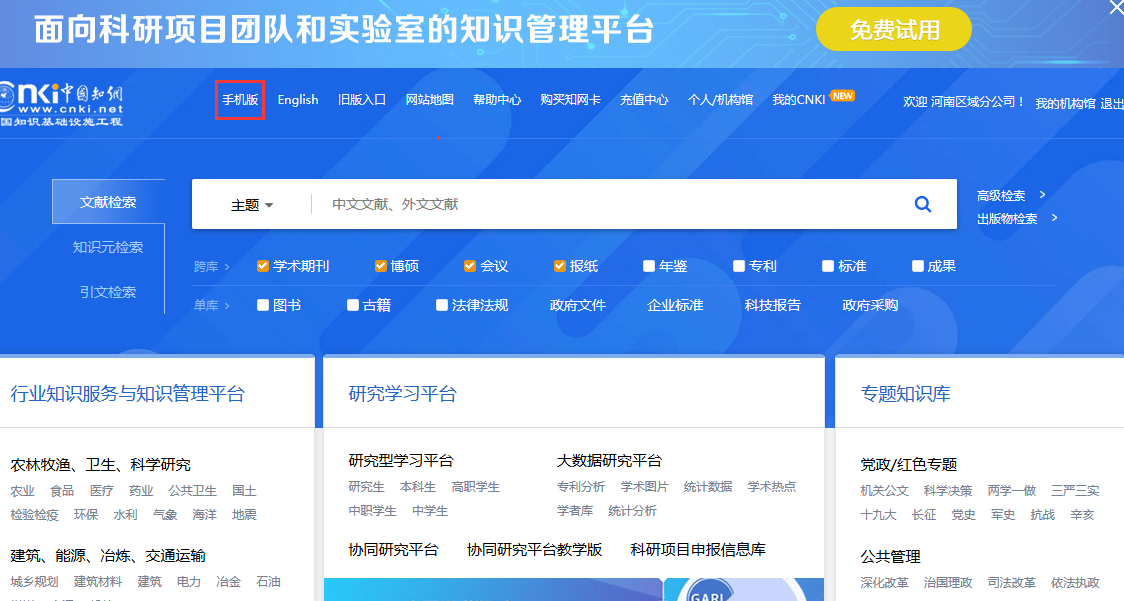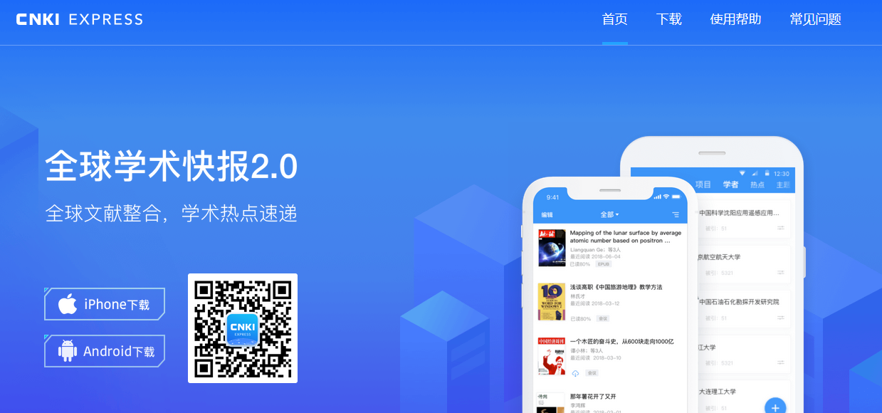 2.手机端app访问 (1)中国知网CNKI数据库手机端app名称为“全球学术快报”,(请注意,不要下载手机知网,手机知网需要另外收费使用),可直接在手机应用商店或应用市场搜索“全球学术快报”下载安装app,或者电脑端打开中国知网,点击左上侧的“手机版”,扫描二维码下载。如下图: