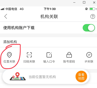 (6)在学校校园地理位置范围内,点击“位置关联”,系统会检测到学校名称“新乡医学院三全学院”,点击学校名称后即关联成功,关联成功后即可在app首页检索浏览下载文献,在校内登录账户一次,即可在校外使用15天,15天内再在校内登录一次,校外可后推15天使用,寒暑假期间登录期间会自动延长。