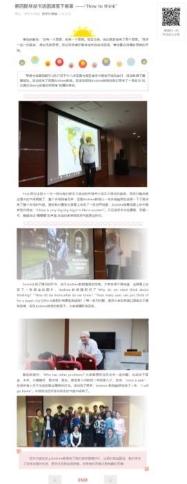 期待已久的第四期琴湖书话之“How to think”篇即将在2018年3月27日晚7点图书馆五楼学术报告厅强势来袭。Andrew Duggan博士将为我们带来一场名为“马云遇见Sherry或者如何思考”的精彩演讲。我相信在这场活动中你会有非一般的感想,质一般的跳跃,让你的思维得到洒脱,灵魂得到净化,让你重新审视对英语的见解,收获满满。同时,活动中大家也可以针对自己的专业或者自己感兴趣的方面进行提问,设置这一活动环节的目的就是要拉近老师与学生的距离,加大互动力度,更好的调动活跃积极的气氛。好了,洋话连篇的一场一问一答活动即将打响。期待外教老师带给我们那一堂领略异国风采的智者思考课吧!期待与你的相遇!