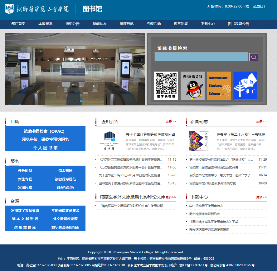 The library website gathers various literature resources such as library paper books and periodicals, electronic literature resources, usage guides, and consulting services, and all of these have the corresponding "columns" respectively, where readers can inquire the document they need in the corresponding "columns" according to their needs.