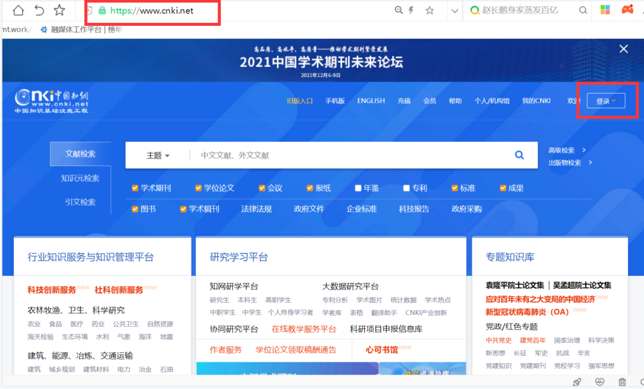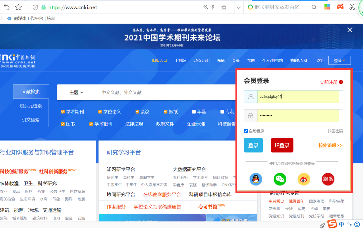 (4)如果有中国知网的个人账号,可直接登录,如果没有注册过个人账号,可点击登录后注册账号,或qq、微信、微博登录,如下图: