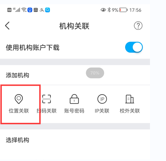 (6)在学校校园地理位置范围内,点击“位置关联”,系统会检测到学校名称“新乡医学院三全学院”,点击学校名称后即关联成功,关联成功后即可在app首页检索浏览下载文献,在校内登录账户一次,即可在校外使用15天,15天内再在校内登录一次,校外可后推15天使用,寒暑假期间登录期间会自动延长。