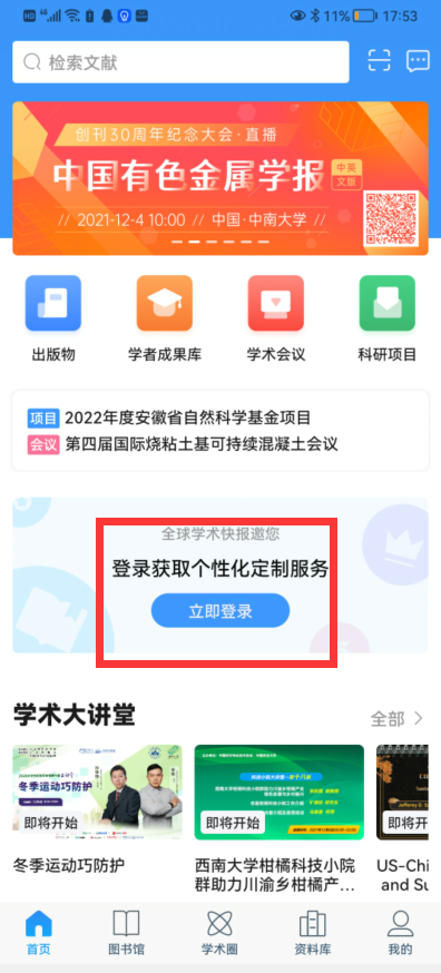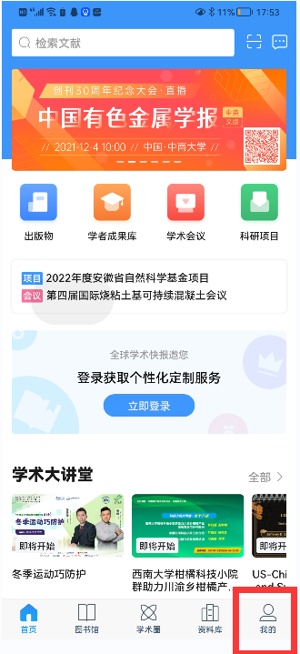 (3)点击右下角的“我的图书馆”,进入登录界面,如下图: