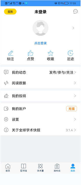(2)点击右上角的登录按钮,输入学校图书馆分配的漫游账号并登录,如下图: