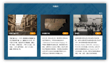特藏库可以浏览民国文献大全、甲骨数字化、老照片及简介信息。