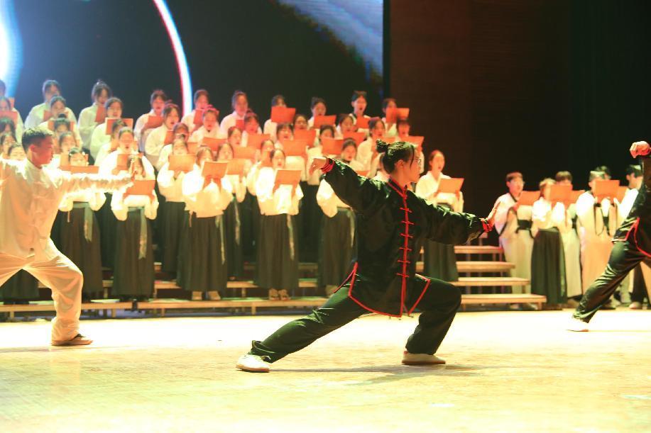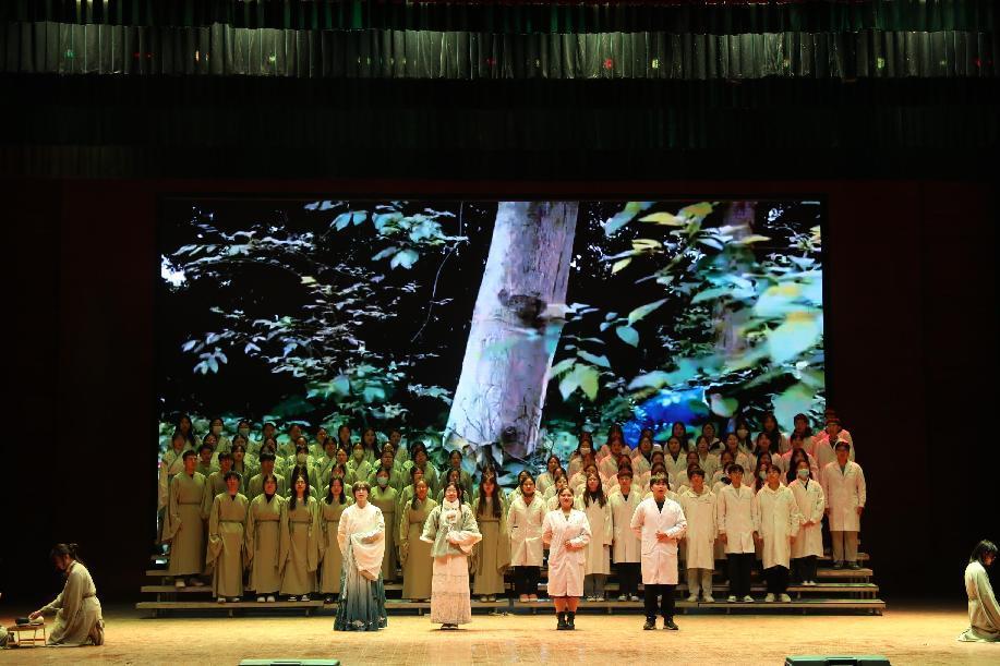 第一部分:以“文明弦歌不辍,文脉延绵不绝”为主题的《百人诵读》比赛展演。党委宣传部副主任陈圆圆,药学院党总支书记、副院长李印省,检验与影像学院党总支副书记、医学影像学院副院长苗莹莹,健康管理学院党总支副书记、行政副院长陈东明,智能医学工程学院党总支书记、副院长陈继超,护理学院党总支副书记杨昕岳担任评委。六个书院以先秦诸子百家中极具代表性的六家思想文化为表演主题,以“百人诵读+艺术创作表演”的形式,用铿锵有力的声音和优雅生动的表演为现场观众带来一场震撼人心的视听盛宴,其中:崇德书院的《经典传世·百人诵儒》对应“以德化民”的儒家文化,羲和书院的《无为而治,道法自然》对应“无为而治”的道家文化,精诚书院的《墨家永兼爱,今者向其行》对应“兼爱尚同”的墨家文化,智行书院的《商君书》对应“信赏必罚”的法家文化,仁智书院的《纵横捭阖,睥睨天下》对应“足智多谋”的纵横家文化,德馨书院的《医家纵古今》对应“悬壶济世”的医家文化,展现出中华文明的源远流长和新时代青年人对文化的积极传承和发展。