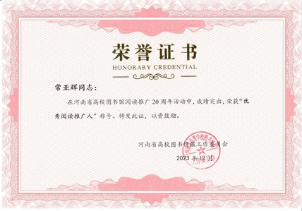 根据《关于公布河南省高校图书馆阅读推广20周年成果获奖名单的通知》(豫高校图工委﹝2023﹞11号)的文件精神,我校图书馆荣获4项成果奖: 图书馆被评为:阅读推广先进单位 常亚辉被评为:优秀阅读推广人 图书馆学生管理委员会被评为:优秀读书社团 《百人诵读》活动被评为:优秀阅读推广案例 为深入宣传贯彻党的二十大精神和习近平总书记致首届全民阅读大会贺信精神,大力推动书香社会建设,涵育社会阅读风尚,充分发挥高校图书馆在全民阅读体系中的阵地作用。自2003年11月 份至今,河南省高等学校图书情报工作委员会(以下简称“河南省高校图工委”)开展“阅读经典文化 建设书香校园”阅读推广活动已有20年。为总结经验,鼓励先进,展现“书香河南”建设成果,发挥先进典型示范引领作用,河南省高校图工委决定开展“河南省高校阅读推广20周年成果评选活动”,共设置:阅读推广先进单位、优秀阅读推广人、优秀读书社团、优秀阅读推广案例等4个奖项。 我校图书馆自开馆以来,时刻把握新时代高等教育发展趋势,结合图书馆文化传承和创新的教育职能,坚持服务育人、创新育人、文化育人,利用“4·23世界读书日”“毕业季”“迎新季”“校园读书月”等特殊节日,以多个相关主题,开展一系列“线上线下相结合”的阅读推广活动。通过不断拓展读者服务形式,引导师生走进图书馆,多读书、读好书,促进书香校园建设,让学生读者在学好专业知识的同时,学会利用图书馆的技能,拓宽知识面,提升综合素质。 根据河南省高校图工委的评选文件要求,我校图书馆对近年来的阅读推广工作进行了认真梳理,总结经验教训,整理材料上报。经河南省高校图工委组织的评审委员会评审,我校图书馆荣获4个奖项,充分表明了河南省图书馆界对我校图书馆阅读推广活动的肯定。 近年来,我校图书馆阅读推广活动得到了学校领导、各相关部门的大力支持,经过图书馆广大职工和图书馆学生管理委员会、读者服务协会等学生组织的积极努力、辛勤工作,取得了优异的成绩,为建设书香校园做出了一份积极贡献。未来,我校图书馆会继续创新形式,丰富内容,开展更具特色的阅读推广活动,让更多师生走进图书馆,参与到书香校园建设工作中来。